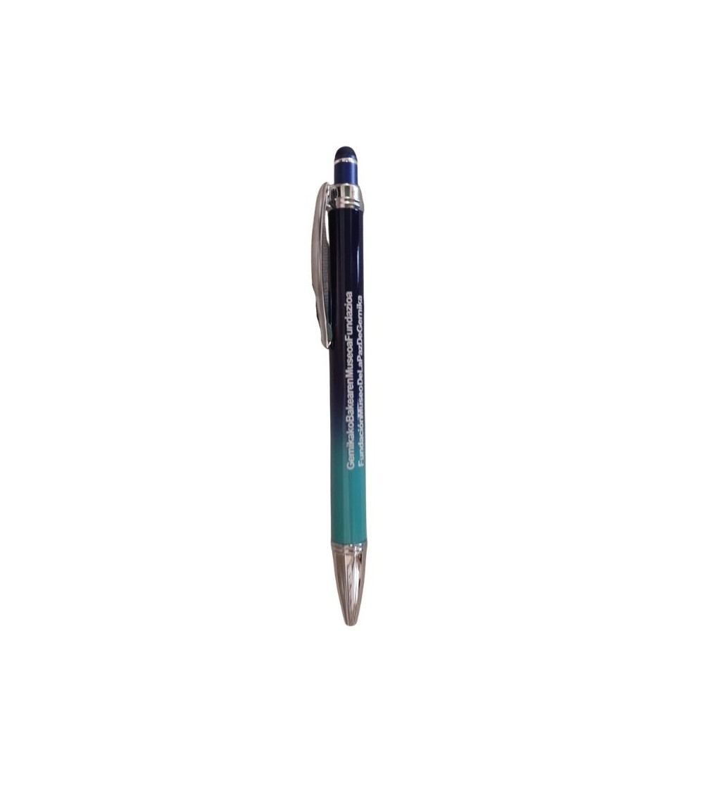 Bolígrafo azul y verde de tinta azul, personalizado con el nombre del Museo.